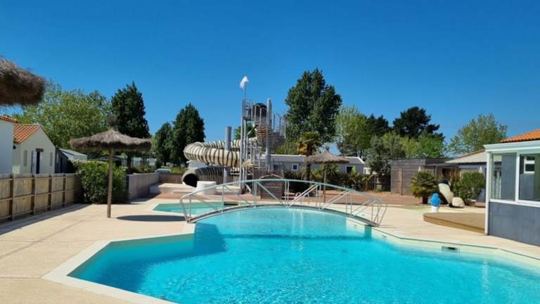 Das Mobil Home XXL 4 chambres - Camping La Bolée d'Air bietet eine angenehme Atmosphäre mit einem saisonalen Außenpool, einem Innenpool, einem Garten sowie einer Bar. Die Unterkunft ist für den Aufenthalt von Familien geeignet und verfügt über eine Terrasse.
