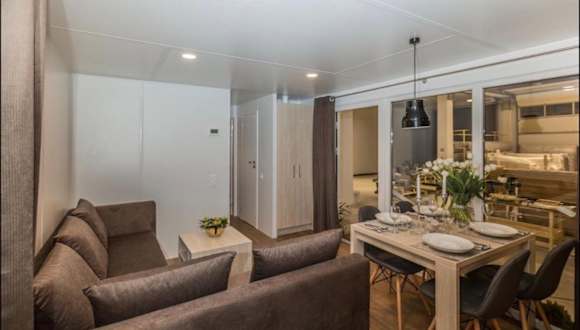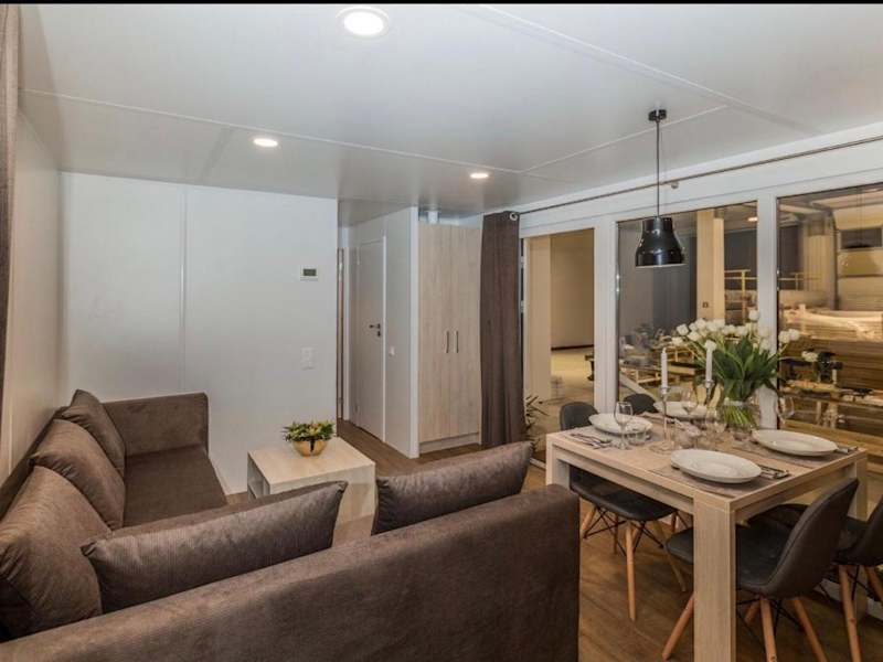 Das Apartment im Erdgeschoss des Mobilheims Murnersee Haus 5 verfügt über 2 Schlafzimmer, eine gut ausgestattete Küche mit einem Kühlschrank und einem Backofen sowie ein gemütliches Wohnzimmer mit einem Flachbild-TV. Handtücher und Bettwäsche werden gestellt, um Ihren Aufenthalt so angenehm wie möglich zu gestalten.