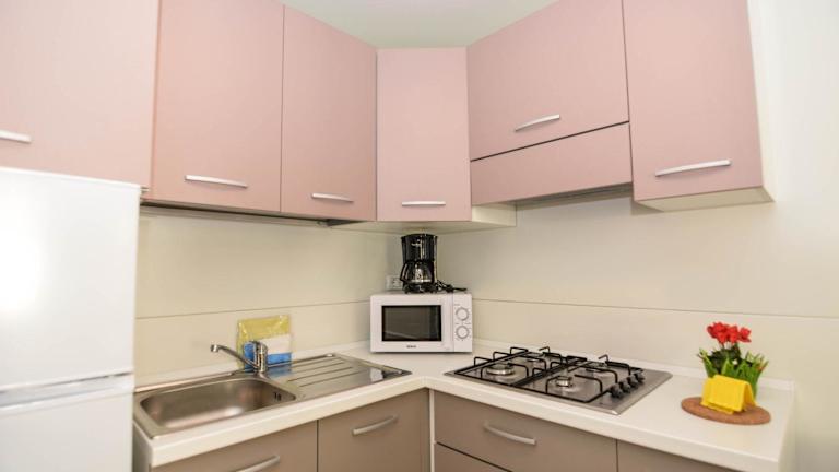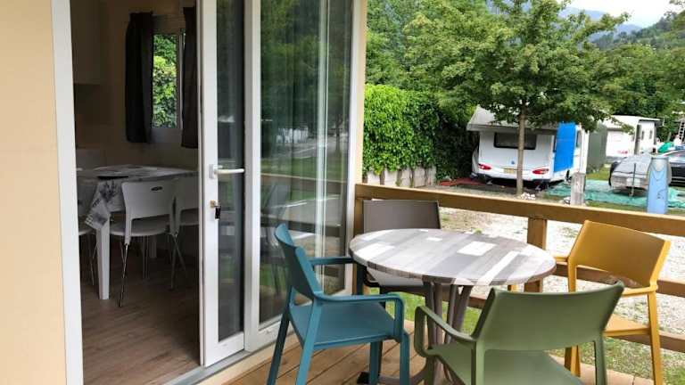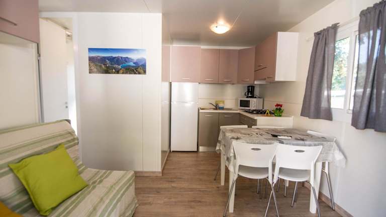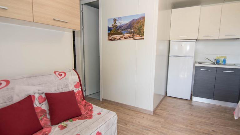 Die Mobilheime sind mit einer voll ausgestatteten Küchenzeile, einem Kühlschrank und einer Kaffeemaschine versehen. Zudem verfügen sie über einen Flachbild-TV, ein eigenes Badezimmer mit Bidet und Dusche sowie eine Heizung und Klimaanlage.