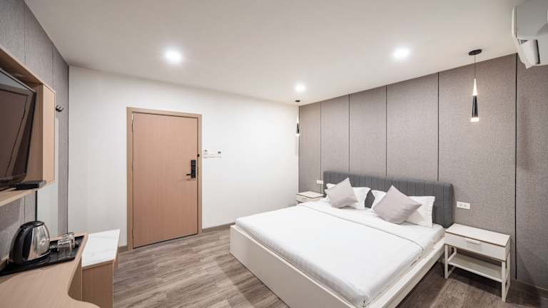 Das Moca Hotel in Bangkok bietet seinen Gästen einen angenehmen Aufenthalt mit einer Vielzahl von Annehmlichkeiten. Von Express-Check-in und -Check-out bis hin zu Nichtraucherzimmern und kostenfreiem WLAN, hier wird der Komfort der Gäste großgeschrieben. Die freundliche und hilfsbereite 24-Stunden-Rezeption steht Ihnen jederzeit zur Verfügung. Die Zimmer sind modern eingerichtet und verfügen über alle notwendigen Annehmlichkeiten wie Flachbild-Sat-TV, Kühlschrank und Kaffeemaschine. Einige Zimmer bieten zudem einen Balkon, auf dem Sie den Blick auf die Stadt genießen können. Die Lage des Hotels ist ideal, mit verschiedenen Einkaufszentren und Sehenswürdigkeiten in der Nähe. Der internationale Flughafen Bangkok-Don Mueang ist ebenfalls leicht zu erreichen.