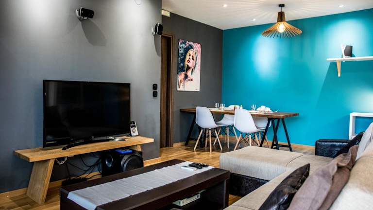 Das Modern Apartment verfügt über ein modernes Design und bietet ein Schlafzimmer, eine voll ausgestattete Küche und ein Badezimmer mit Dusche. Das Apartment ist mit einem Flachbild-TV und einem komfortablen Sitzbereich ausgestattet, in dem Sie sich nach einem langen Tag entspannen können. Die Klimaanlage sorgt dafür, dass Sie sich auch an heißen Tagen wohl fühlen. Kostenloses WLAN ist ebenfalls verfügbar.