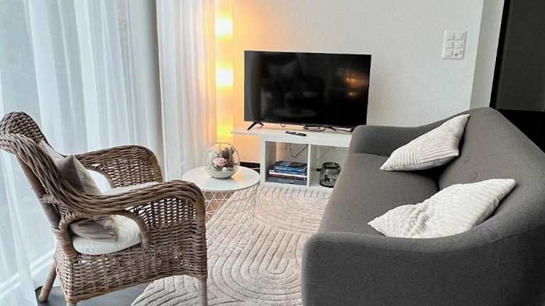 Die Ferienwohnung verfügt über ein Schlafzimmer, ein Badezimmer mit Dusche, eine gut ausgestattete Küche mit Kühlschrank und Geschirrspüler sowie einen Flachbild-TV. Handtücher und Bettwäsche werden bereitgestellt.