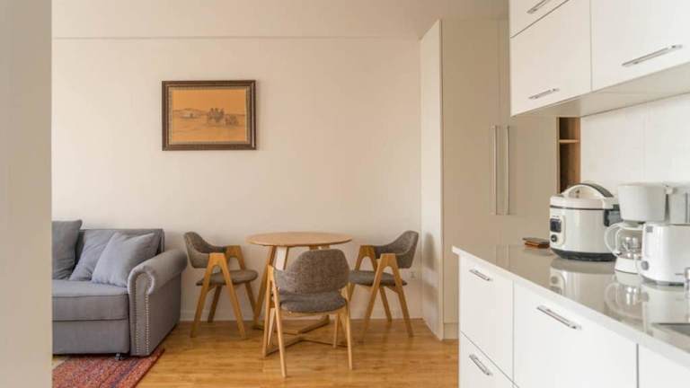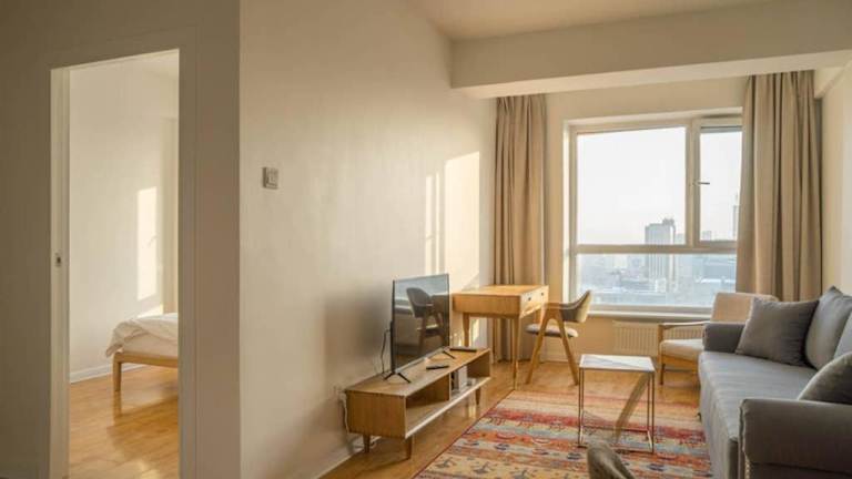 Die Ferienwohnung verfügt über 1 Schlafzimmer und ein Wohnzimmer. Eine voll ausgestattete Küche ist mit einem Kühlschrank und einer Kaffeemaschine ausgestattet. Das Badezimmer bietet eine Dusche und kostenlose Pflegeprodukte. Handtücher und Bettwäsche werden bereitgestellt. Die Unterkunft bietet einen Blick auf die Stadt und die Berge.