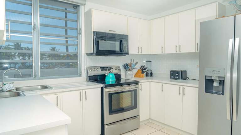 Das Modern Beach Walk at Puerto Bahia #30 befindet sich in Rincon, nur wenige Gehminuten von den Stränden Steps, Maria's und Doña Lala entfernt. Diese Lage ermöglicht es den Gästen, die natürliche Schönheit der Umgebung in vollen Zügen zu genießen. Das Religiöse Kunstmuseum Porta Coeli ist ebenfalls leicht erreichbar und bietet einen Einblick in die lokale Kultur und Geschichte. Der Flughafen Eugenio Maria de Hostos ist ebenfalls in der Nähe und sorgt für eine bequeme Anreise.