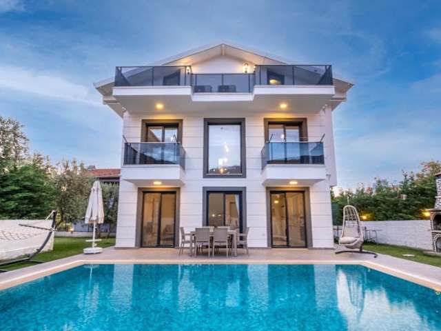 Die moderne neu erbaute Villa mit 4 Schlafzimmern, Pool und Garten im Zentrum von Hisaronu in Fethiye ist der perfekte Ort für einen entspannten und luxuriösen Urlaub. Mit einem eigenen Pool, Grillmöglichkeiten und kostenfreien Privatparkplätzen bietet die Villa alle Annehmlichkeiten, die man sich wünschen kann. Die Zimmer sind modern eingerichtet und mit einer voll ausgestatteten Küche, einem Flachbild-TV und 5 Badezimmern ausgestattet. Genießen Sie den Stadtblick und entspannen Sie im Außenpool oder auf der Terrasse. Die Villa bietet auch die Möglichkeit, ein Auto zu mieten, um die Umgebung zu erkunden. Der Yachthafen Fethiye und der Yachthafen Ece Saray sind nur eine kurze Fahrt entfernt. Der Flughafen Dalaman ist ebenfalls gut erreichbar.