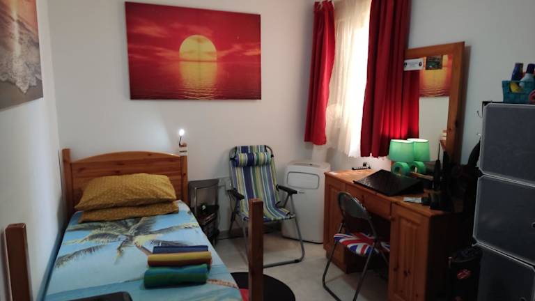 Das Single room for one person only bietet einen gemütlichen und komfortablen Raum für Alleinreisende. Es verfügt über einen Flachbild-Sat-TV und eine Klimaanlage, um Ihnen einen angenehmen Aufenthalt zu ermöglichen. Die Gemeinschaftsküche ist mit einem Kühlschrank, einem Backofen und einer Mikrowelle ausgestattet, so dass Sie Ihre eigenen Mahlzeiten zubereiten können. Das Badezimmer verfügt über eine Dusche mit kostenfreien Pflegeprodukten und einem Haartrockner.