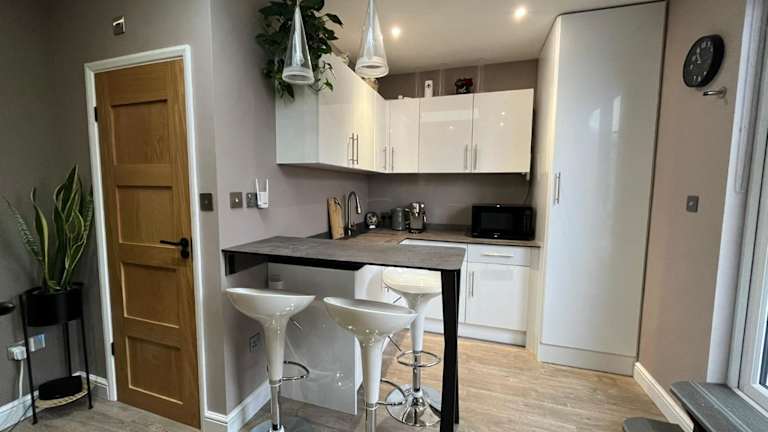 Das Modern Garden Studio bietet eine komfortable Übernachtungsmöglichkeit mit kostenlosem WLAN und einem Privatparkplatz. Die Unterkunft wird von einem privaten Gastgeber geleitet und ist eine Nichtraucherunterkunft. Check-in ist ab 15:00 Uhr bis 00:00 Uhr möglich, der Check-out kann zwischen 00:00 Uhr und 10:00 Uhr erfolgen. Es gibt eine Mindestalterregelung für den Check-in von 18 Jahren. In der Unterkunft sind Feiern wie Junggesellen-/Junggesellinnenabschiede nicht gestattet.