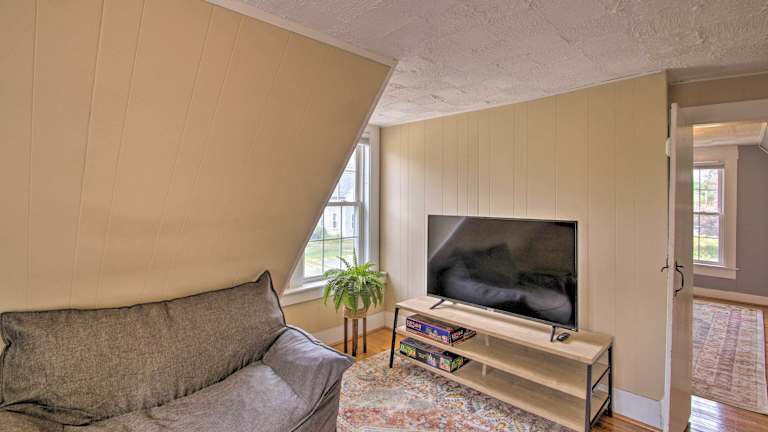 Das Modern Home - 2 Mi to Cranmore Mtn Resort in Conway ist ein gemütliches Ferienhaus mit kostenfreiem WLAN und Klimaanlage. Es liegt in der Nähe von beliebten Attraktionen wie dem Kahuna Laguna Wasserpark und dem Story Land Vergnügungspark. Das Ferienhaus bietet Platz für bis zu 6 Personen und verfügt über einen Balkon, 3 Schlafzimmer, ein Wohnzimmer und eine gut ausgestattete Küche. Handtücher und Bettwäsche sind vorhanden. Die Lage des Ferienhauses ermöglicht es den Gästen, den White Mountain National Forest zu erkunden und den Mount Washington zu besuchen. Der internationale Flughafen Portland ist ca. 95 km entfernt.