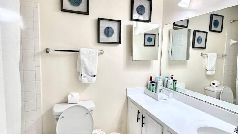 Die Ferienwohnung umfasst 3 separate Schlafzimmer, ein Wohnzimmer, eine voll ausgestattete Küche mit Kühlschrank und Geschirrspüler sowie 3 Badezimmer. Handtücher und Bettwäsche sind ebenfalls vorhanden.