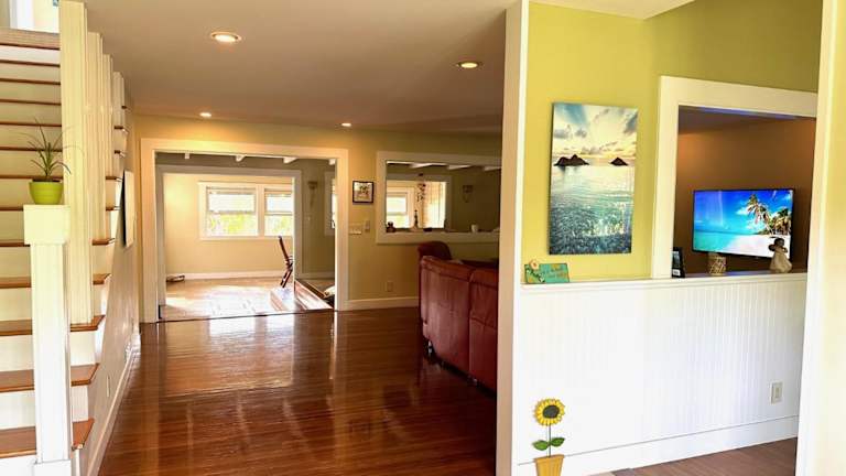 Verbringen Sie Ihren Urlaub im Modern Luxury Beach House Kailua und genießen Sie den atemberaubenden Meerblick und den Komfort dieses Ferienhauses. Mit kostenfreiem WLAN, einem Garten und Privatparkplätzen bietet das Haus alles, was Sie für einen unvergesslichen Aufenthalt benötigen. Nutzen Sie die Nähe zum Strand Kailua und zum Strand Lanikai, um Aktivitäten wie Wandern und Tennis zu erleben. Das Ferienhaus verfügt über 2 Schlafzimmer, eine voll ausgestattete Küche und 3 Badezimmer. Handtücher und Bettwäsche werden gestellt. Der internationale Flughafen Honolulu ist nur 23 km entfernt.