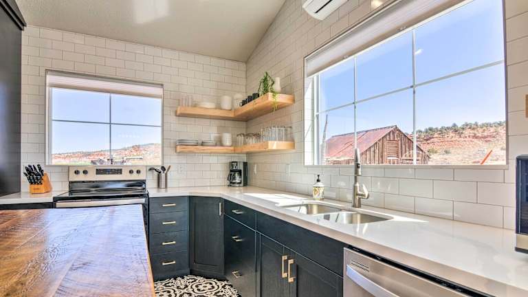 Das Modern Ranch House befindet sich in Kanab und bietet eine idyllische Lage mit Blick auf das Tal. Die Umgebung lädt zu Outdoor-Aktivitäten wie Wandern und Erkundungstouren ein. Der nächstgelegene Flughafen, der Page Municipal Airport, ist etwa 106 km entfernt.