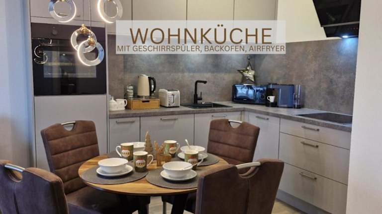 Die Ferienwohnung umfasst ein Schlafzimmer, ein Wohnzimmer sowie eine voll ausgestattete Küche mit Kühlschrank und Kaffeemaschine. Zudem verfügt sie über ein Badezimmer mit Dusche und kostenlosen Pflegeprodukten. Handtücher und Bettwäsche werden bereitgestellt.