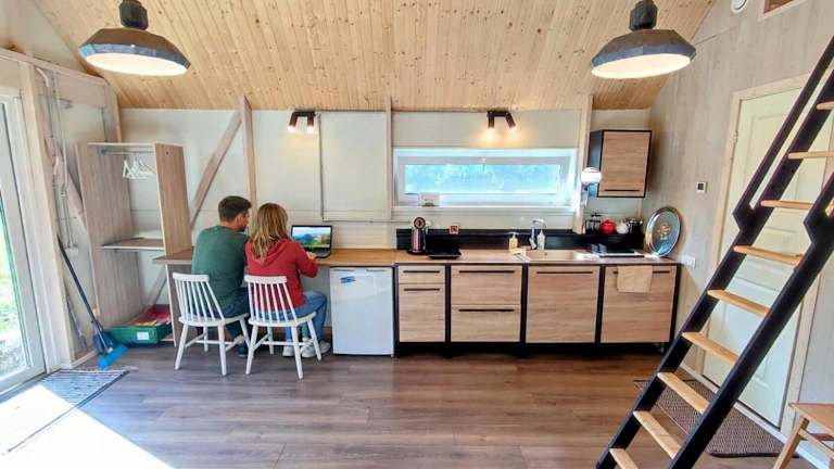 Die Umgebung der Modern Sauna Cabin ist ideal für Wanderungen und Erkundungen. Genießen Sie die malerische Landschaft und entdecken Sie die Natur. Nach einem aktiven Tag können Sie sich in der Sauna des Chalets entspannen und neue Energie tanken.