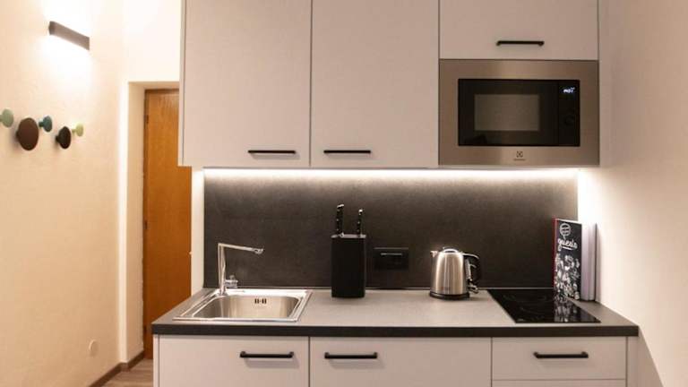 Im Modern studio apartment in the heart of Merano haben Sie die Möglichkeit, Ihre Mahlzeiten selbst zuzubereiten und Ihre Lieblingsgerichte in der gut ausgestatteten Küche zu kochen. Alternativ können Sie auch die zahlreichen Restaurants und Cafés in der Umgebung erkunden und lokale Spezialitäten genießen.