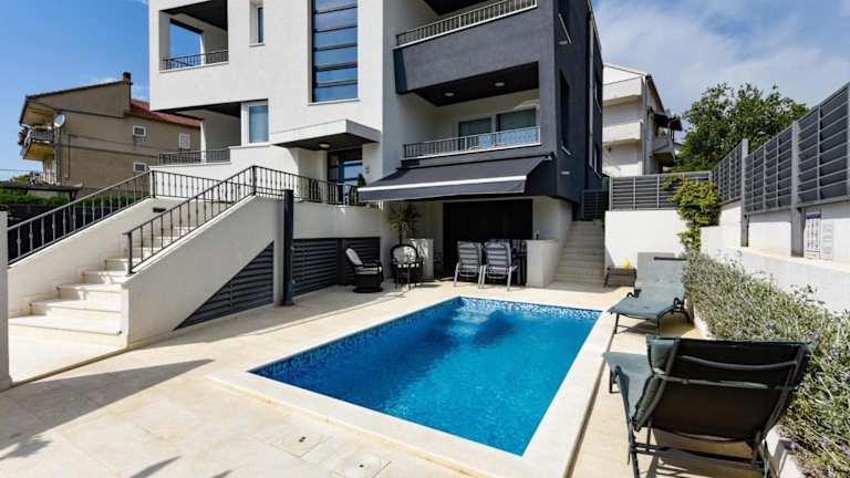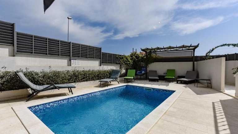 Die moderne Villa in Sveti Filip bietet einen Balkon mit Gartenblick, einen eigenen Pool und einen Garten. Zur Ausstattung gehören außerdem kostenloses WLAN sowie eine Klimaanlage. Die Unterkunft bietet Platz für Gästen in 5 Schlafzimmern und verfügt über ein Wohnzimmer sowie eine voll ausgestattete Küche.