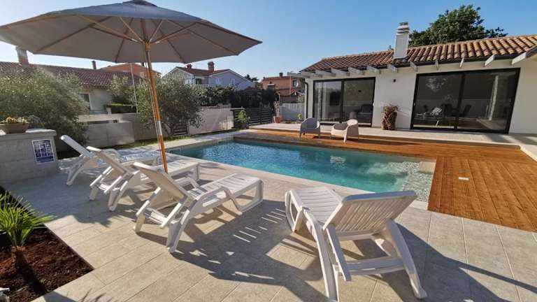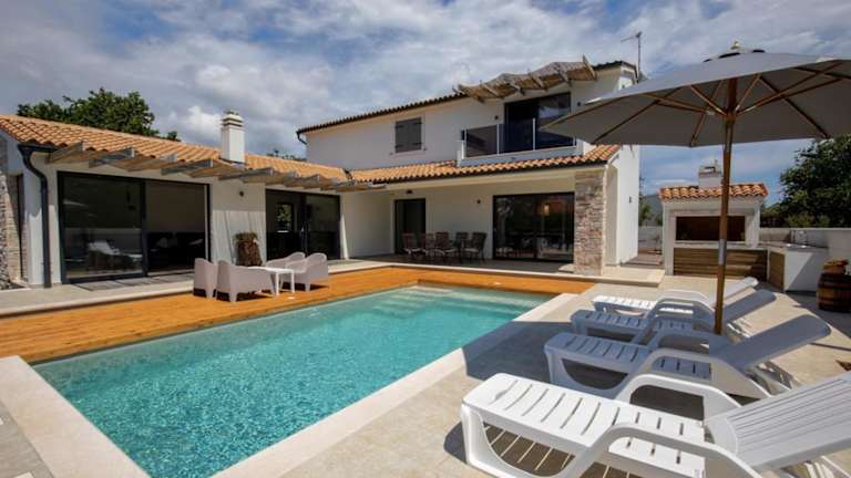 Die Modern Villa bietet Platz für bis zu 8 Personen und ist eine großzügige Unterkunft mit einem Außenpool sowie einem Garten. Gästen stehen kostenlose Privatparkplätze zur Verfügung und es wird kostenloses WLAN angeboten.