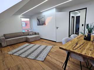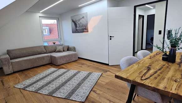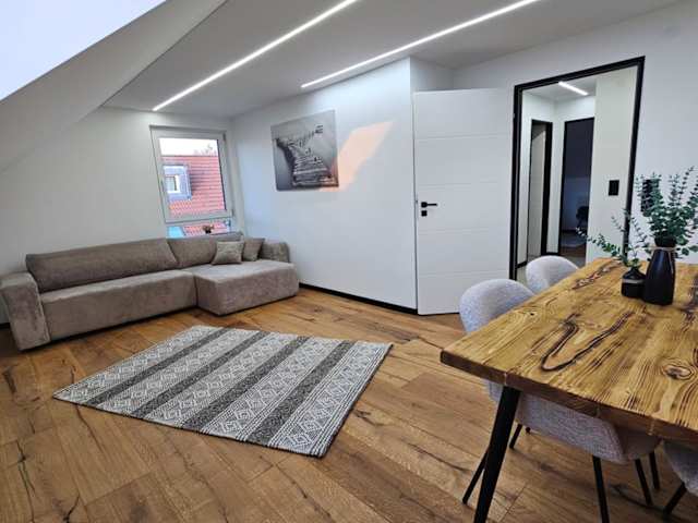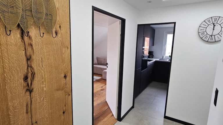 Die Moderne 3 Zimmer Wohnung ist eine private Unterkunft mit einem Garten und kostenlosem Privatparkplatz. Es handelt sich um eine Nichtraucherunterkunft, die besonderen Wert auf Sauberkeit und Hygiene legt, indem sie zwischen den Aufenthalten desinfiziert wird.
