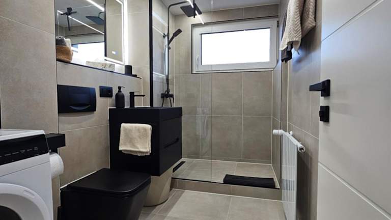 Die Wohnung verfügt über zwei Schlafzimmer, ein Wohnzimmer sowie eine voll ausgestattete Küche, die mit einem Kühlschrank und einer Kaffeemaschine ausgestattet ist. Zudem gibt es ein Badezimmer mit Dusche und Haartrockner. Handtücher und Bettwäsche werden bereitgestellt.