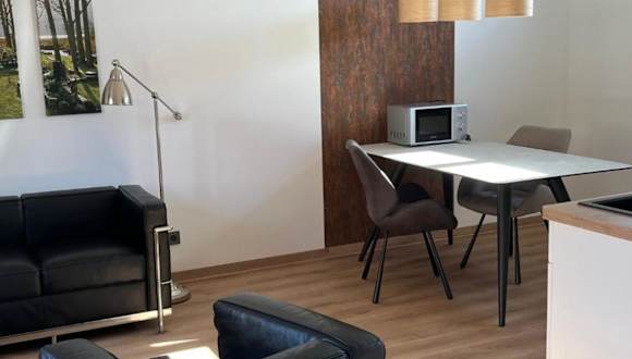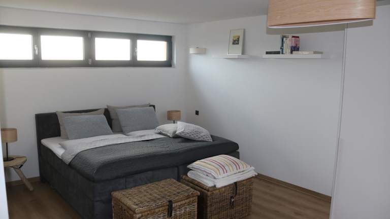Die Ferienwohnung besteht aus einem Schlafzimmer, einem Wohnzimmer und einem Badezimmer mit Dusche und Haartrockner. Handtücher und Bettwäsche werden bereitgestellt. Die Zimmer sind rollstuhlgerecht und bieten spezielle Einrichtungen wie ein WC mit Haltegriffen und ein höheres WC. Nichtraucherzimmer sind vorhanden.