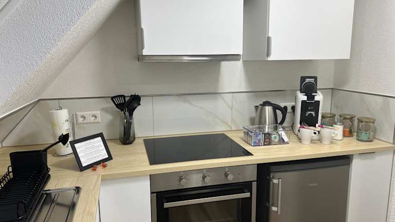 Die Ferienwohnung besteht aus einem Schlafzimmer, einem Wohnzimmer und einer voll ausgestatteten Küche, die mit Kühlschrank und Kaffeemaschine ausgestattet ist. Im Badezimmer befinden sich eine Dusche und kostenlose Pflegeprodukte. Handtücher und Bettwäsche werden bereitgestellt.
