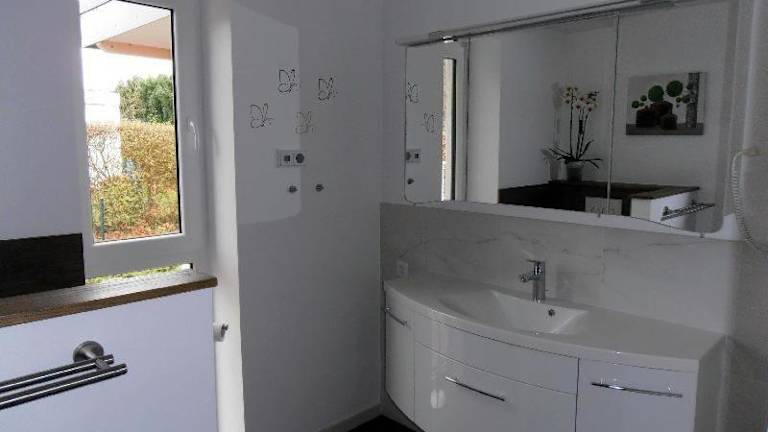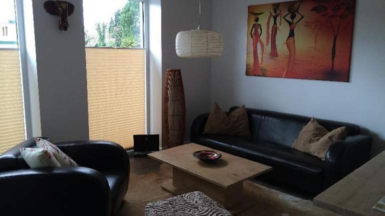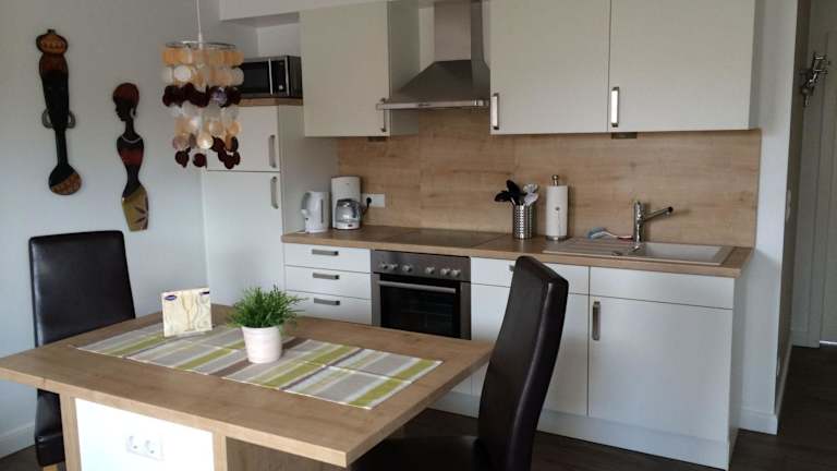 Moderne Ferienwohnung in ruhiger Lage bietet Übernachtungsmöglichkeiten in einem gut ausgestatteten Apartment mit einem Garten und einer Terrasse. Die Unterkunft ist Nichtraucher und präsentiert sich als ruhiger Rückzugsort.
