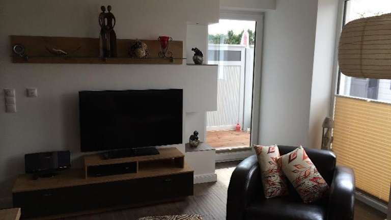 Die Ferienwohnung verfügt über ein Schlafzimmer sowie eine Küchenzeile, die mit einem Kühlschrank und einem Geschirrspüler ausgestattet ist. Ein Badezimmer mit Dusche, Haartrockner und Waschmaschine ist ebenfalls vorhanden. Zur Unterhaltung stehen ein TV, ein DVD-Player und ein CD-Player zur Verfügung.