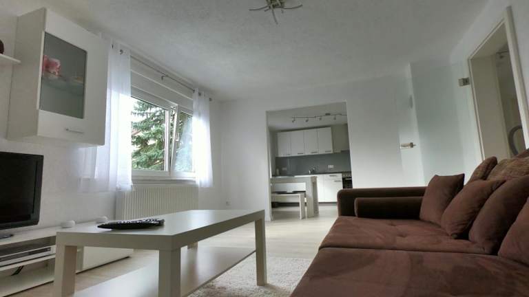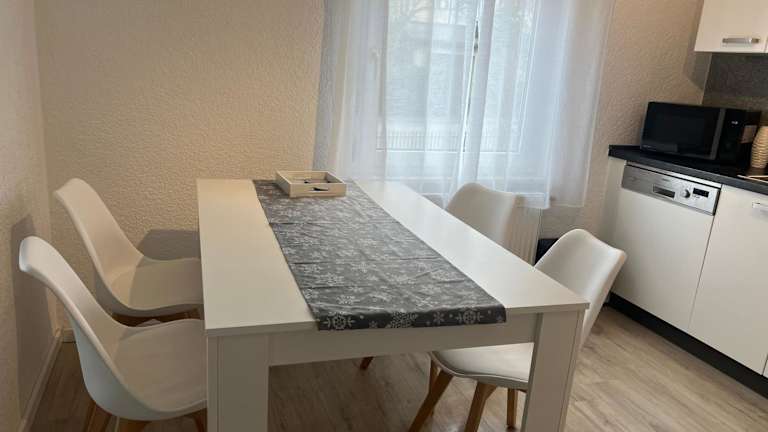 Die moderne, helle 2,5 Zimmer Wohnung bietet eine komfortable und großzügige Wohnfläche. Sie ist ausgestattet mit einem großen Bad und einer voll ausgestatteten Küche, ideal für einen angenehmen Aufenthalt. Außerdem steht den Gästen ein Privatparkplatz und kostenloses WLAN zur Verfügung.