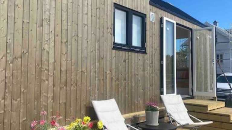 Das Moderne minihus ved havet bietet Ihnen Zugang zu einer Terrasse, auf der Sie entspannen und den Blick auf die Stadt und das Meer genießen können. In der Umgebung gibt es auch viele Möglichkeiten für Outdoor-Aktivitäten wie Spaziergänge entlang der Küste oder Wanderungen in der umliegenden Landschaft.