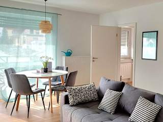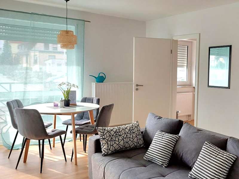 Die Unterkunft Moderne Wohnung mit Vollausstattung in ruhiger Lage, W-LAN bietet Blick auf den Garten und ist ausgestattet mit einem Balkon sowie kostenlosem WLAN. Sie ist ideal für Gäste, die eine ruhige Umgebung suchen.