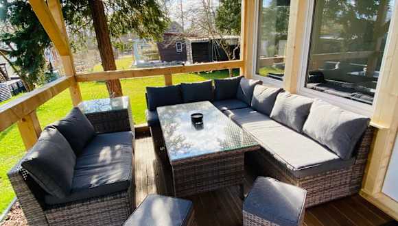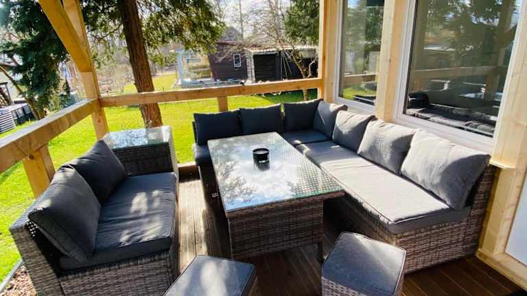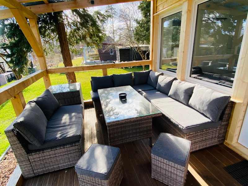 Der moderne Einraumbungalow bietet Gartenblick und ist auf einem eigenen Grundstück gelegen. Die Unterkunft ist mit einem Garten, einer Terrasse und Grillmöglichkeiten ausgestattet und bietet kostenfreien Privatparkplatz.