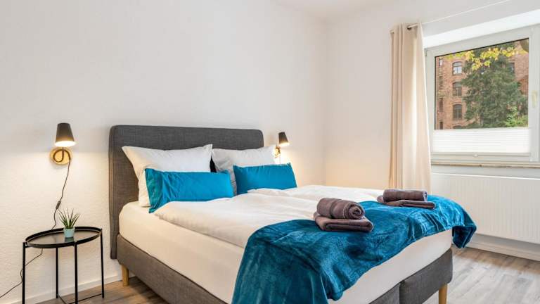 Die Unterkunft bietet ein modernes Apartment mit zwei Boxspringbetten und einem Balkon sowie einem Garten. Kostenloses WLAN steht zur Verfügung. Das Apartment verfügt über zwei Schlafzimmer und einen gemütlichen Wohnbereich.