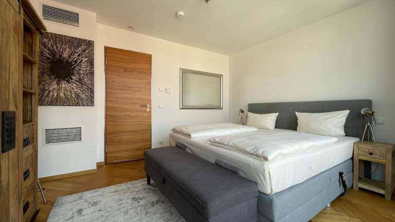 Die Ferienwohnung verfügt über zwei Schlafzimmer und eine Küche, die mit einem Kühlschrank und Geschirrspüler ausgestattet ist. Zudem gibt es einen Flachbild-TV, einen Sitzbereich sowie zwei Badezimmer mit einer Dusche. Handtücher und Bettwäsche werden zur Verfügung gestellt, und es stehen schallisolierte Zimmer zur Verfügung, um einen ruhigen Aufenthalt zu gewährleisten.