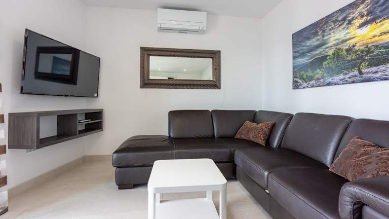 Das moderne Apartment mit Meerblick bietet eine komfortable und klimatisierte Unterkunft für bis zu zwei Gäste. Die großzügige Ausstattung umfasst einen Außenpool sowie verschiedene Freizeitmöglichkeiten in der Umgebung. Die Lage ist ideal für Strandliebhaber und Erholungssuchende.