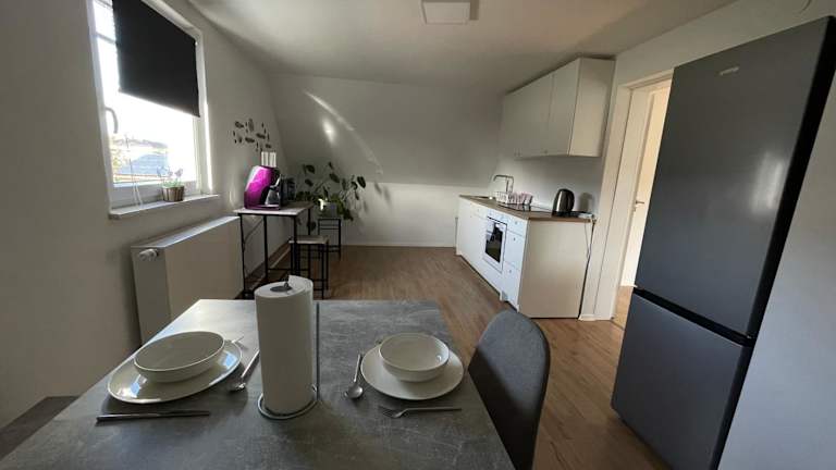 Die Ferienwohnung verfügt über 2 Schlafzimmer und bietet eine Küche mit Kühlschrank und Ofen. Weiterhin sind ein Flachbild-TV, ein Sitzbereich und ein Badezimmer mit Badewanne vorhanden. Handtücher und Bettwäsche werden bereitgestellt.
