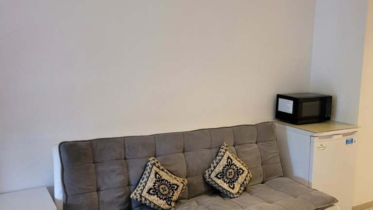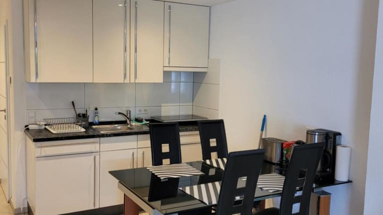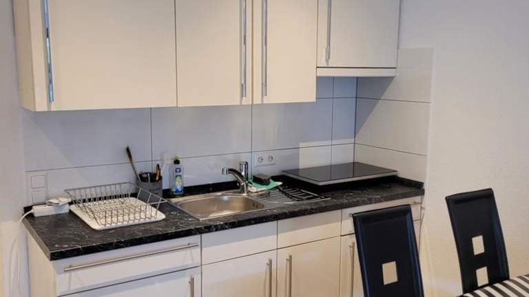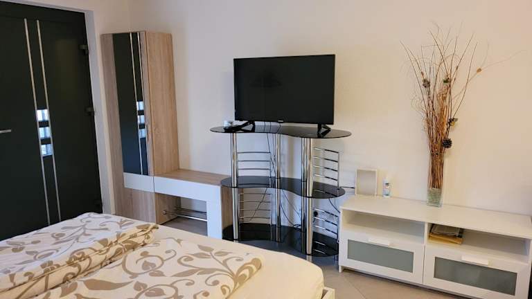 Das Apartment verfügt über ein modernes und gut ausgestattetes Schlafzimmer. Zur Ausstattung gehören ein Flachbild-Kabel-TV, eine Küchenzeile mit Kühlschrank und Mikrowelle sowie eine Waschmaschine. Das Badezimmer ist mit einer Dusche ausgestattet. Handtücher und Bettwäsche werden gestellt, um Ihnen den Aufenthalt so angenehm wie möglich zu gestalten.