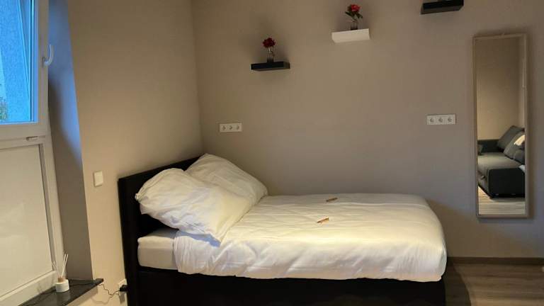 Die Ferienwohnung verfügt über ein Schlafzimmer sowie eine voll ausgestattete Küche mit Kühlschrank und Ofen. Ein Flachbild-TV und ein Sitzbereich stehen ebenfalls zur Verfügung. Das Badezimmer ist mit einer Dusche ausgestattet. Handtücher und Bettwäsche werden in der Unterkunft bereitgestellt.
