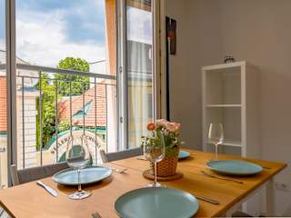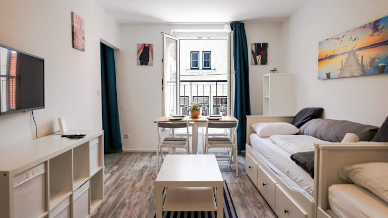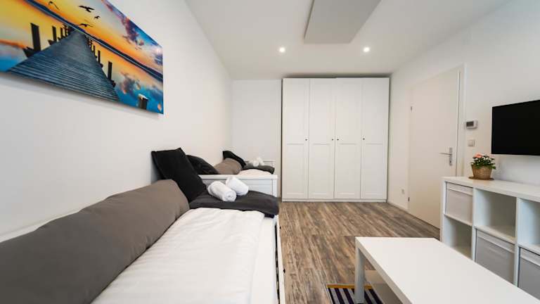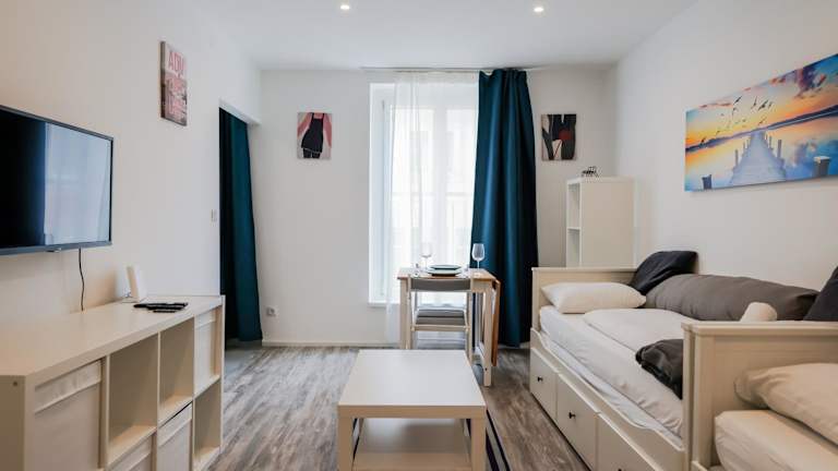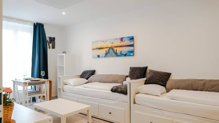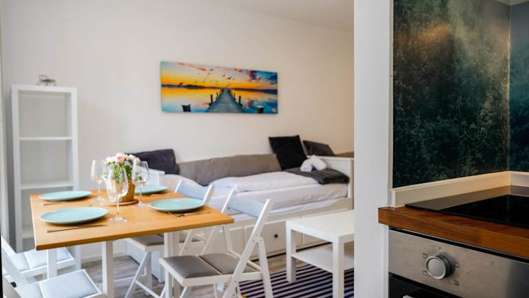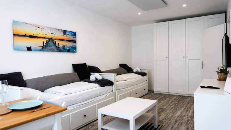 Das moderne Studio im Zentrum 4 Personen bietet eine komfortable Unterkunft für bis zu vier Personen. Die großzügige Ferienwohnung verfügt über eine voll ausgestattete Küche und modernste Annehmlichkeiten. Sie ist ideal für Familien oder Gruppen, die eine zentrale Lage mit Zugang zu verschiedenen Attraktionen suchen.