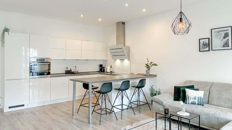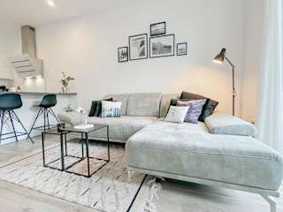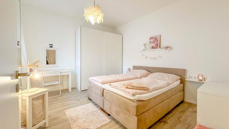 Die Ferienwohnung umfasst ein Schlafzimmer, eine Küche mit Kühlschrank und Geschirrspüler, einen Flachbild-TV, einen Sitzbereich sowie ein Badezimmer mit Dusche. Handtücher und Bettwäsche werden zur Verfügung gestellt.