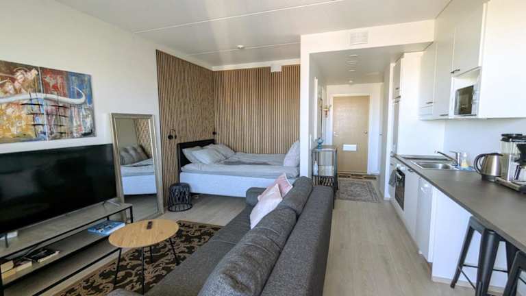 Moderni yksiö ist eine klimatisierte Ferienwohnung mit Balkon, die einen Blick auf die Stadt bietet. Die Unterkunft verfügt über einen privaten Parkplatz sowie kostenloses WLAN. Die Mindestalter für den Check-in beträgt 18 Jahre, und die Unterkunft wird von einem privaten Gastgeber verwaltet. Feiern wie Junggesellenabschiede sind nicht gestattet.