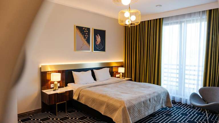 Die Unterkunft MODERNO hotel Garwolin ist ein modernes Hotel mit klimatisierten Zimmern und kostenlosem WLAN. Es werden verschiedene Annehmlichkeiten wie Zimmerservice und Gepäckaufbewahrung angeboten.