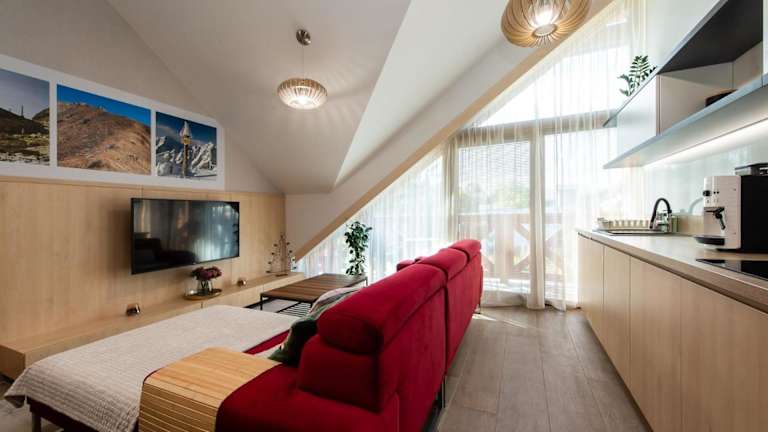 Die Unterkunft befindet sich in Tatranská Lomnica, nur 18 km vom Baumkronenpfad entfernt. Der Tschirmer See liegt 24 km entfernt und die Therme Bania ist 40 km von der Unterkunft entfernt. Der nächstgelegene Flughafen ist der Flughafen Poprad-Tatry, der sich 14 km von der Unterkunft befindet.