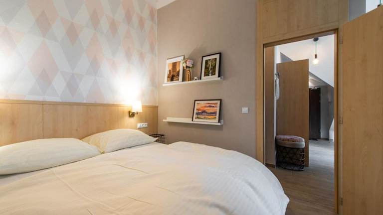 Die Ferienwohnung umfasst zwei Schlafzimmer, ein Wohnzimmer und ein Badezimmer mit Dusche. Eine gut ausgestattete Küche mit Kühlschrank und Geschirrspüler ist vorhanden, ebenso ein Flachbild-TV. Handtücher und Bettwäsche werden zur Verfügung gestellt.
