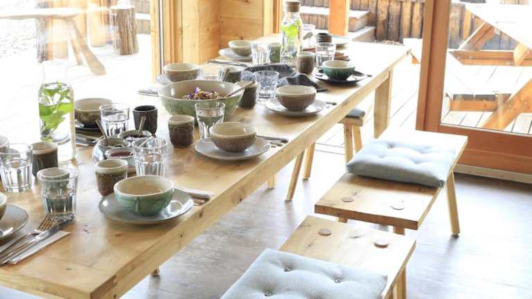 Auf dem Hof werden verschiedene Bio-Produkte wie Gemüse, Marmeladen, Öle und Knäckebrot produziert. Diese können Sie im Hofladen vor Ort kaufen und direkt genießen.