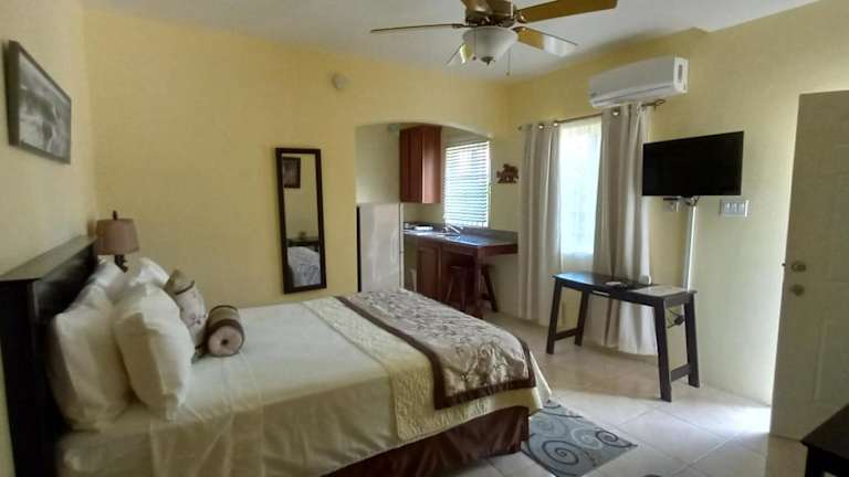 Das Hotel Modrians in Runaway Bay bietet komfortable Unterkünfte mit kostenfreiem WLAN und herrlichem Gartenblick. Die Zimmer sind geschmackvoll eingerichtet und verfügen über eine voll ausgestattete Küche sowie ein eigenes Bad mit kostenlosen Pflegeprodukten. Das tägliche Frühstück bietet eine Auswahl an leckeren Gerichten. Entspannen Sie in der Gemeinschaftslounge und erkunden Sie die Umgebung, darunter das nahegelegene Ocho Rios und der internationale Flughafen Sangster.