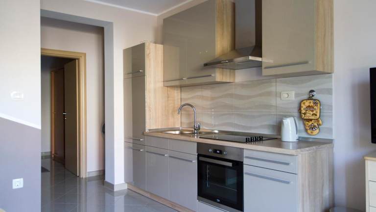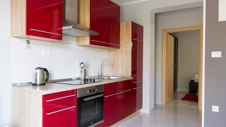 Die voll ausgestattete Küche der Apartments beinhaltet einen Kühlschrank, einen Ofen, eine Mikrowelle, eine Herdplatte, eine Kaffeemaschine und einen Wasserkocher. Zudem steht ein Grill zur Verfügung.