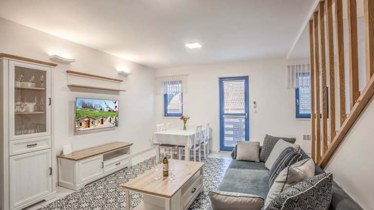 Das Modrý sklep 77 liegt nur 17 km vom Schloss Lednice entfernt in Velké Pavlovice. Die Umgebung bietet eine malerische Kulisse und ist ideal für Wanderungen und Erkundungstouren. Das Schloss Valtice ist ebenfalls einen Besuch wert und liegt 24 km entfernt. Die Festung Spielberg ist 43 km entfernt. Der Flughafen Brünn ist der nächstgelegene Flughafen und etwa 41 km vom Ferienhaus entfernt.