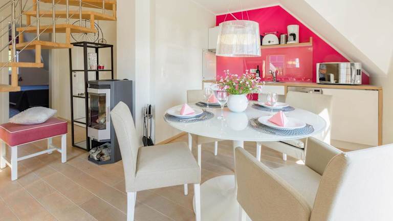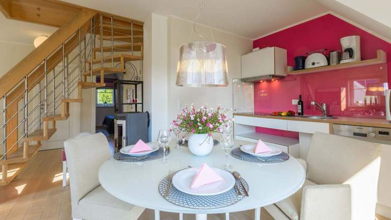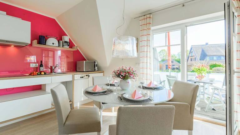 Mönchgut - Strand Resort Rex Rugia App 05 bietet Übernachtungsmöglichkeiten in einer Ferienwohnung. Diese ist mit kostenlosem WLAN und einem TV ausgestattet und verfügt über einen Balkon. Die Unterkunft fördert eine ruhige Atmosphäre, da Feiern wie Junggesellenabschiede nicht gestattet sind.