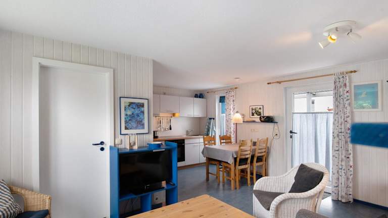 Die Unterkunft Möve Aba Bungalow 63 bietet Übernachtungsmöglichkeiten direkt am Strand mit einem Garten, Grillmöglichkeiten und kostenlosem WLAN. Neben einem kostenlos zur Verfügung stehenden Privatparkplatz verfügt die Unterkunft über eine Terrasse mit Gartenblick und ist ideal für Familien.