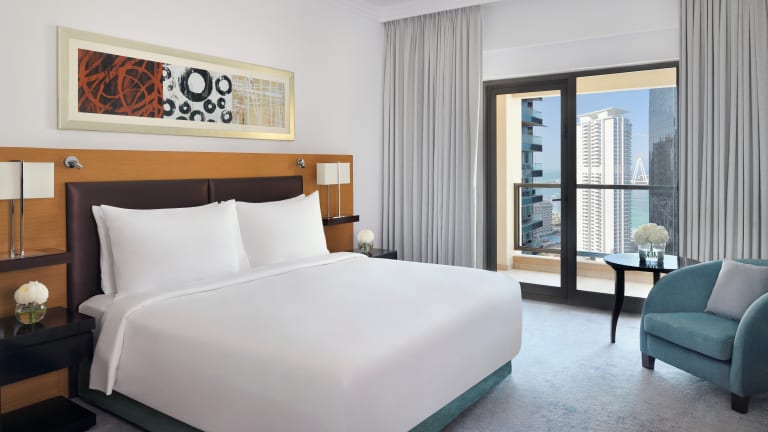 "Das Mövenpick Jumeirah Beach Hotel befindet sich direkt an der Promenade ""The Walk"" in Dubai, nur wenige Gehminuten vom feinsandigen Strand ""JBR Beach"" entfernt. Genießen Sie die Nähe zum öffentlichen Jumeirah Beach und erkunden Sie die Umgebung, die mit zahlreichen Einkaufs- und Unterhaltungsmöglichkeiten lockt. Die Sehenswürdigkeit Dubai Marina ist nur 1,3 km entfernt, das Einkaufszentrum Nakheel Mall erreichen Sie nach 8 km."
