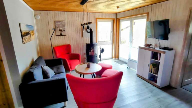 Das Ferienhaus verfügt über zwei Schlafzimmer und bietet einen Fernseher. Die gut ausgestattete Küche umfasst einen Kühlschrank und einen Geschirrspüler. Es gibt ein Badezimmer mit Dusche.